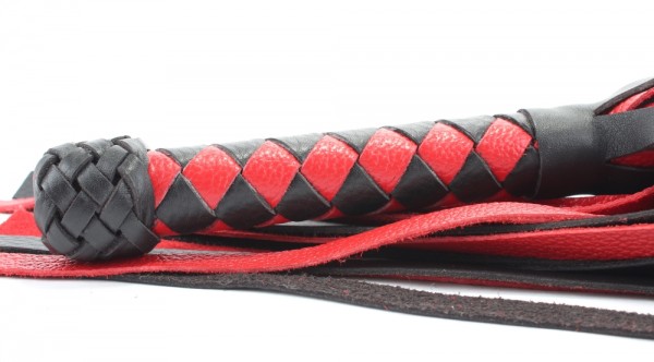 Плеть-многохвостка "BDSM-Арсенал" черно-красная, кожа